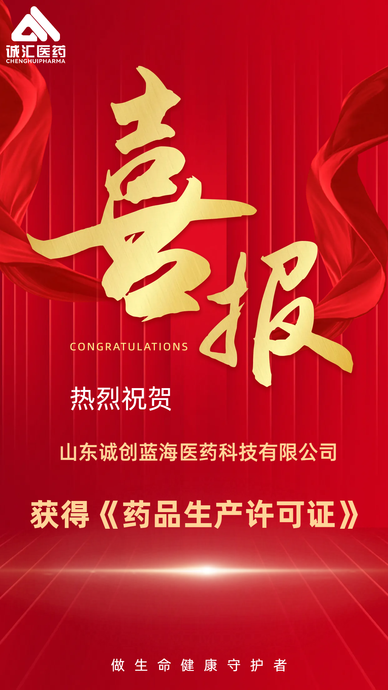 2023年11月,山东诚创蓝海医药科技有限公司获得了由山东省药品监督管理局颁发的《药品生产许可证》。