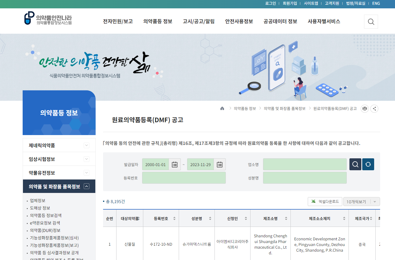 2023年11月29日,韩国MFDS基于我公司提交的舒更葡糖钠注册资料和GMP检查情况,审批通过了舒更葡糖钠KDMF,并在MFDS官方网站进行了公示。