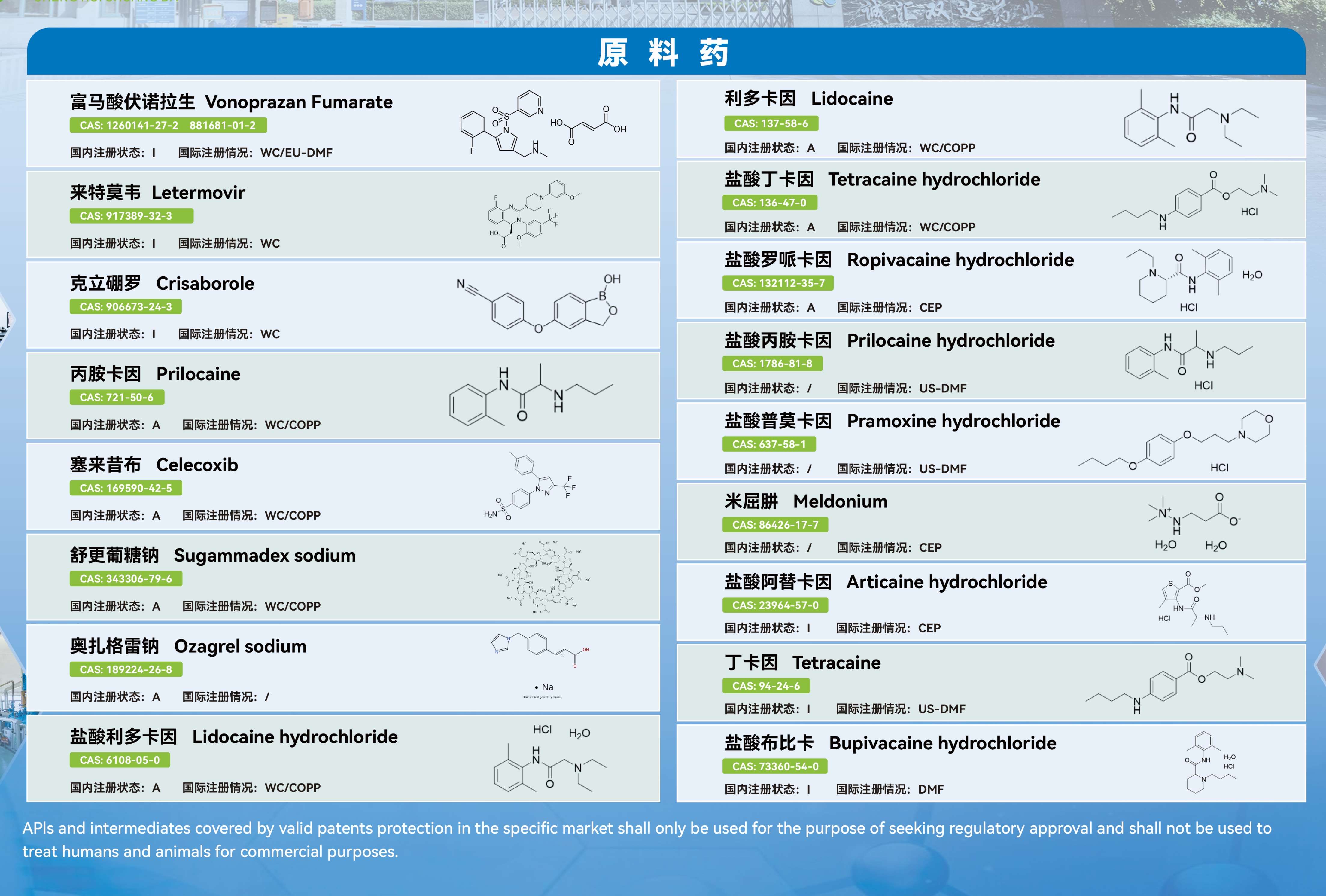 制药原料药,中间体,精细化工、化工原料,兽药原料,生物技术,化学试剂,中药原料,饲料原料及添加剂,保键品原料及添加剂,食品原制药原料及添加剂,化妆品原料及添加剂,合同外包生产及服务等